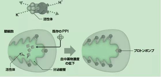 質子泵抑制劑(PPI)的主要缺點如下:(i)它們是酸不穩定的,一般需要制備成腸溶制劑,顯著影響其胃排空速率,這也同時解釋了藥理作用時間為什么有時候會發生顯著的不同;(ii)藥代動力學存在個體差異,因為這些藥物主要由肝藥物代謝酶CYP2C19代謝,其顯示遺傳多態性; (iii)對酸分泌的抑制效應不能持續24小時,因此,PPI不能充分抑制夜間酸分泌;(iv)這些藥物具有緩慢的起效作用,通常在五天的最大效應是明顯的。如果這些問題得到解決,未滿足的醫療需求將會減少,滿足這些需求的藥物將被期望作為與胃酸相關疾病的新治療選擇。研究發現,鉀競爭性酸阻滯劑(P-CAB)的發展有希望和作為最佳的解決方案。
