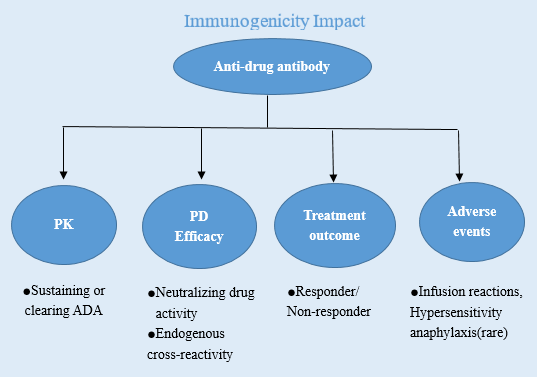 免疫原性(Immunogenicity)是當治療類蛋白產品作為某些疾病的治療藥物時,被機體識別為外來物質(抗原)而產生的免疫應答。然而對于治療性蛋白的這一免疫應答往往是不必要或非預期的,且在此應答過程中可導致機體產生抗藥抗體(Anti-drug antibodies,ADAs),包括抗藥抗體、中和抗體、免疫復合物等,ADA的存在可影響藥物的生物學活性、藥代動力學參數,甚至使得藥物原有的療效降低或缺失,而當有些免疫應答與機體內源性蛋白產生交叉免疫反應,則可能帶來嚴重的臨床安全問題。