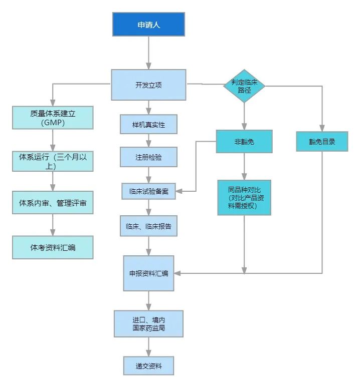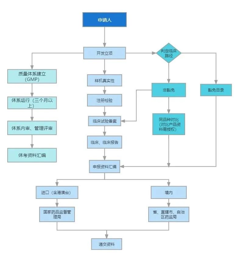 醫療器械注冊過程,涉及流程較多。小編整理了一份注冊流程圖包含:一類備案、二/三類注冊、變更及創新審批等內容。內含最新的全國收費標準、部分法規清單及監管結構,以便于大家更快的了解醫療器械注冊流程。