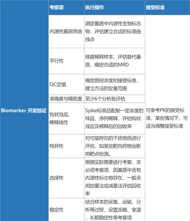 下圖為生物標志物方法開發驗證的部分內容,以作參考:
