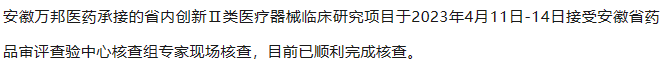 喜訊|安徽萬邦醫(yī)藥助力創(chuàng)新醫(yī)療器械臨床試驗(yàn)順利完成現(xiàn)場核查