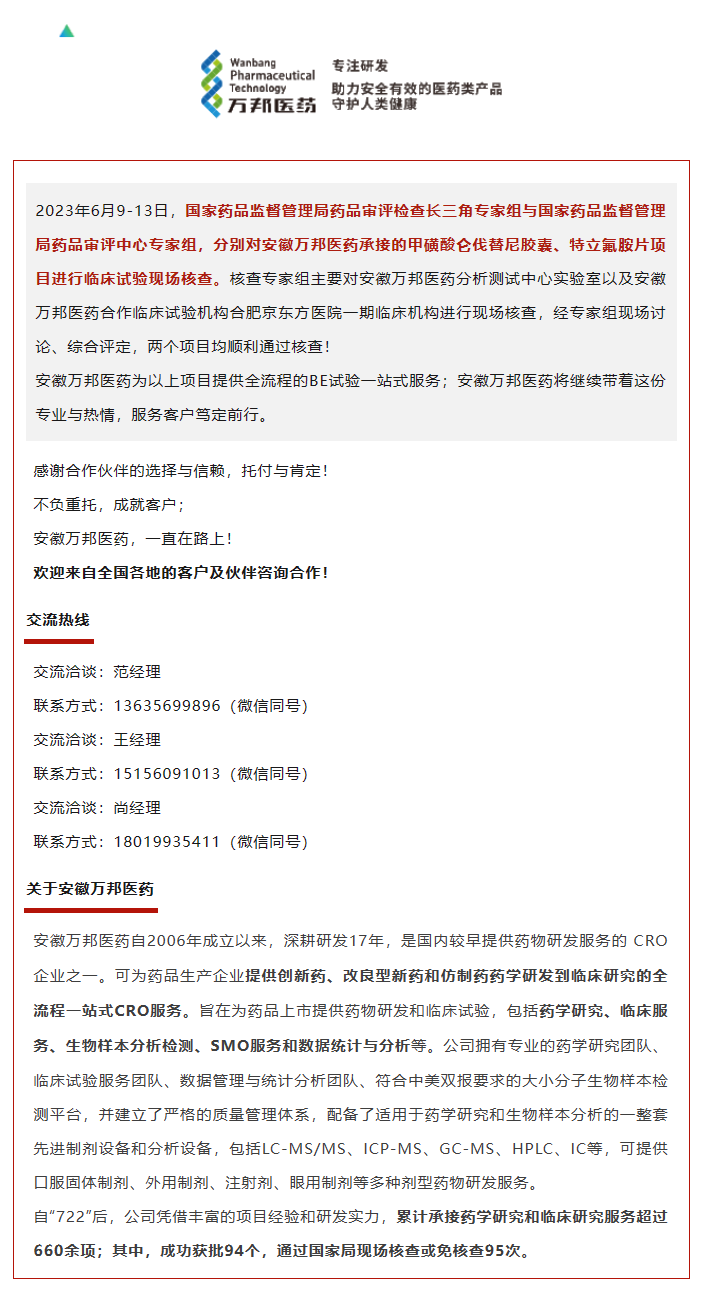 喜報|安徽萬邦醫藥6月助力11個項目獲CDE正式受理